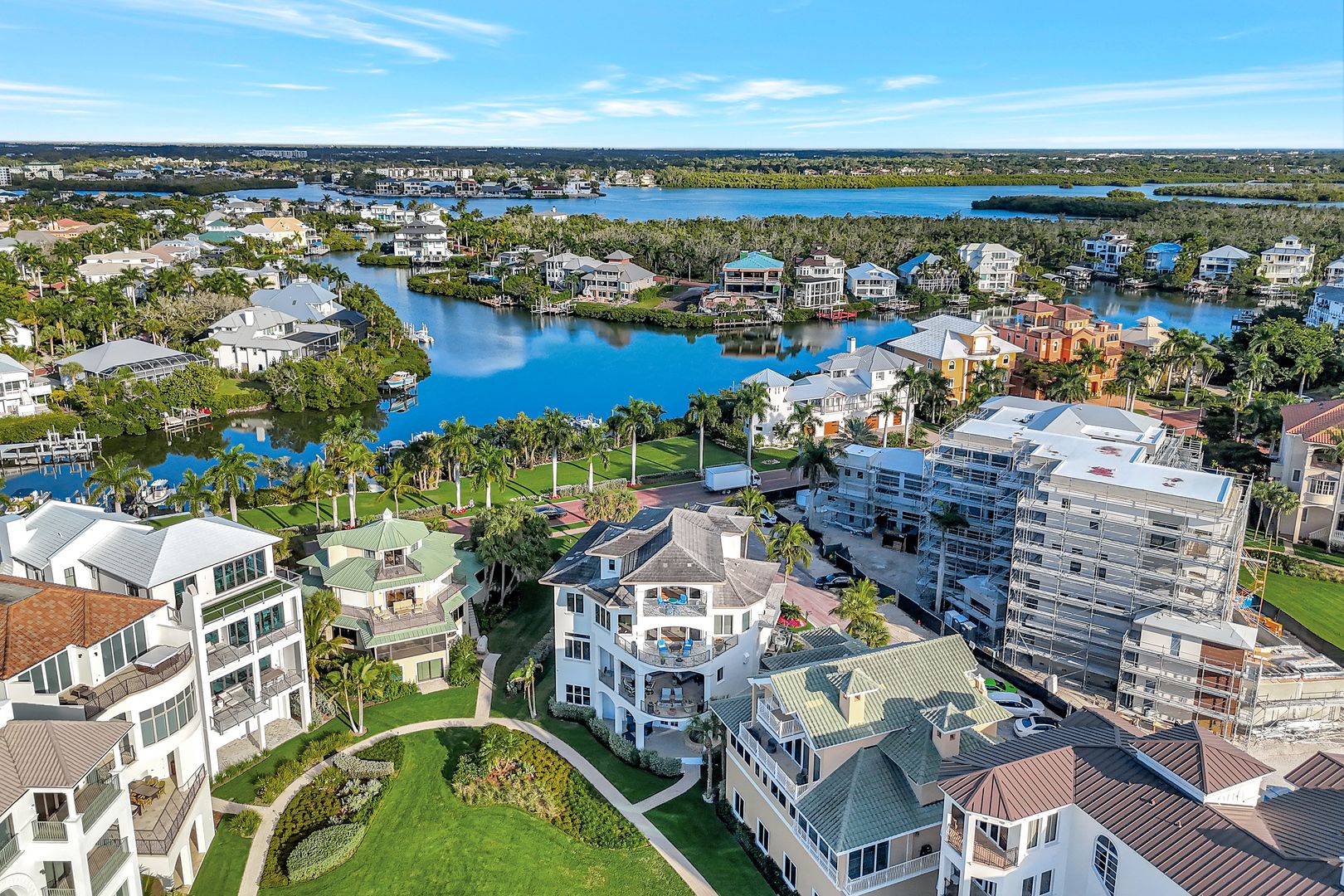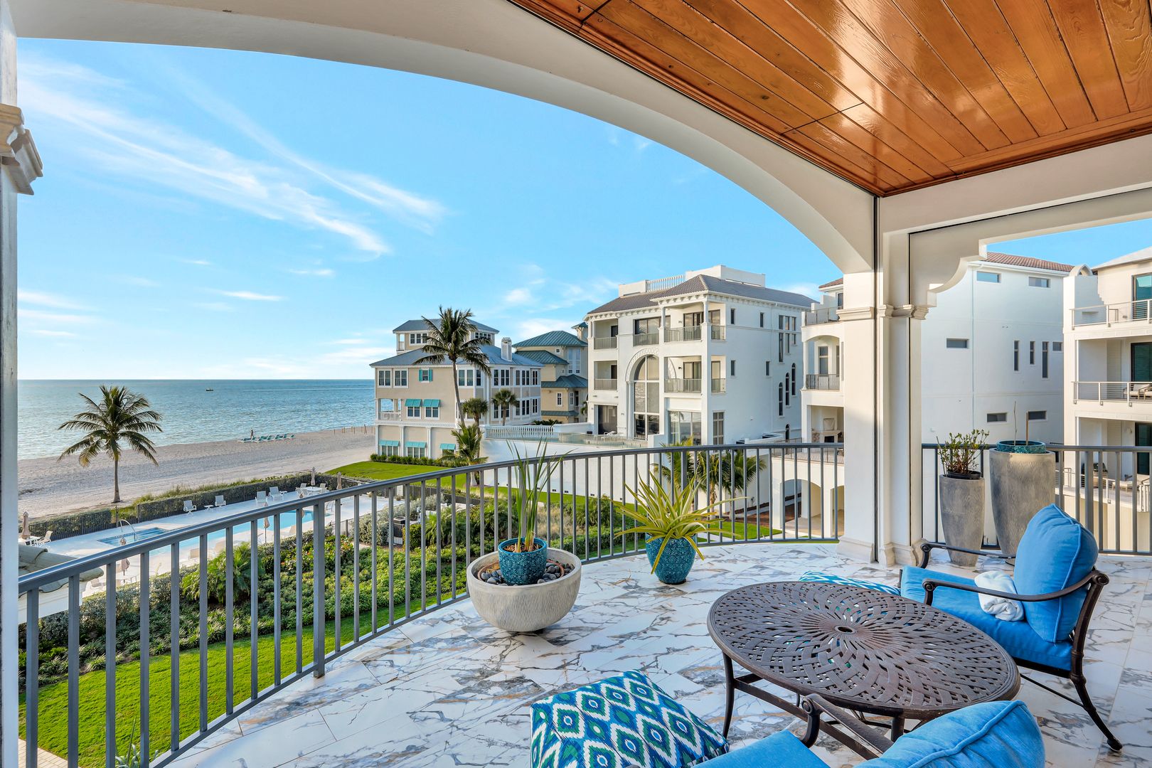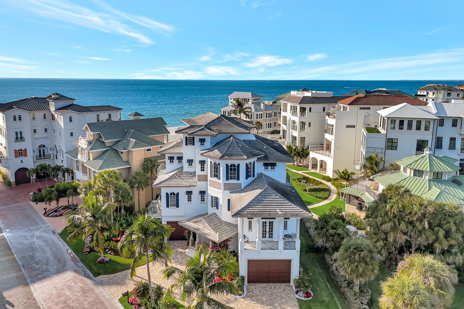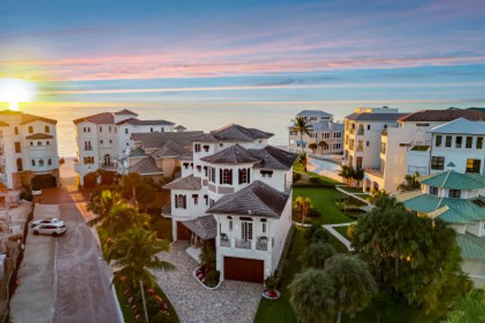 Captivating To Say The Least - This Fully Furnished 4 Bedroom Ensuite 4 Bath Luxury Property In Barefoot Beach's Gated Community Provides An Incomparable Lifestyle! This Windover home built by Potter Homes designed by RG Designs constructed of reinforced concrete with 6,341 sq ft of living area under AC and over 9,774 sq ft of total living. Stunning circular driveway leads you in this masterpiece, welcome home! As you enter the large foyer, you're immediately drawn to the wide wood staircase crafted as a piece of art that leads to all floors with the ease of an elevator to all 4 levels. The main level's open floor plan provides a pallet of soft coastal colors, casual beach elegance throughout; the living room with gas fireplace flows into the dining room & chef's kitchen offering Wolf gas cooktop, Wolf double ovens, microwave, Subzero refrigerator and freezer, 4 Subzero refrigerator/freezer drawers, 3 dishwashers, Miele built-in coffee maker, marble countertops & stunning cabinetry. Each designer inspired ensuite bedroom invites you and your family into unparalleled living - a sanctuary in its own. This floor also offers a light- filled queen suite w/prt balcony, powder bath, laundry rooms, and media room that is soundproof with TV, wet bar/beverage cooler for movie or game night right out to the lanai! The 3rd level features the king primary suite offers walk out private lanai with screens, sitting area, adjoining office w/powder room & a spacious primary bath w/large walk-in shower, seamless glass, soaking tub, marble flooring & his & her separate vanities and huge his & hers designer custom closet and the 3rd queen ensuite bedroom, bath, & pvt balcony. The 4th floor features king second suite with wet/coffee bar, dbl bowl vanity, shower, stunning views from the lanai, as far as you can see. The meticulously finished Potter Home features 12' coffered ceiling was designed for entertaining family and friends, meander from the living room to the spacious outdoor entertaining area, Sonos audio system, w/gas fireplace, TV, built-in gas grill & fridge overlooking the Gulf. Home include 2 laundry rooms, central vacuum, 680 bottles climatically controlled wine room, 7-car climate controlled garage, lanai built-in waterfall spa perfect for relaxing & watching the sunsets. Continue to take in each breathtaking view, beach, & sound of surf over the renovated swimming pool and landscaped garden. A private boat dock, perfect for the boating enthusiast, is available as a separate purchase and is located just across the street. Nestled in Collier County’s Barefoot Beach community amenities include 24-hour guards/ patrols, clubhouse with fitness, tennis, pickleball, pool w/full time on-site manager. Option to join the Club at Barefoot Beach (located in the community) which offers casual & fine dining restaurants, pool & beachside (waitlist w/usage during wait period). Minutes to RSW, Downtown Naples, Mercato, & Waterside, and Golfing.