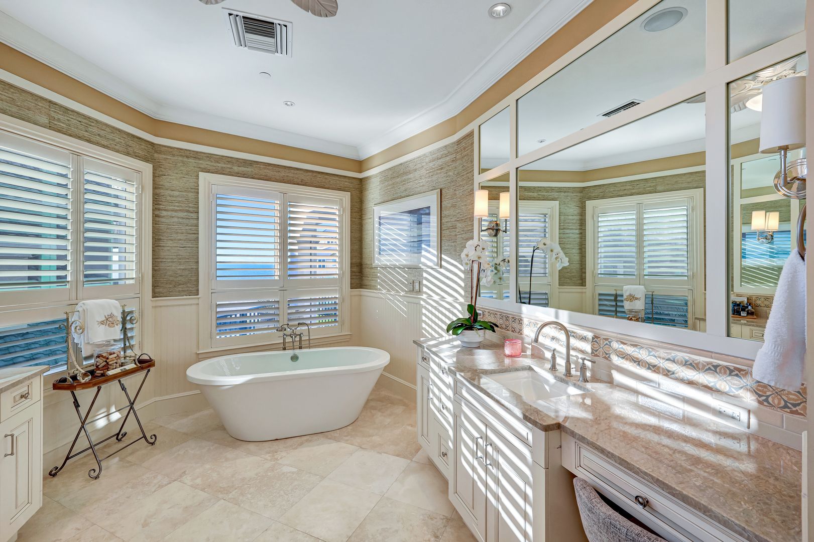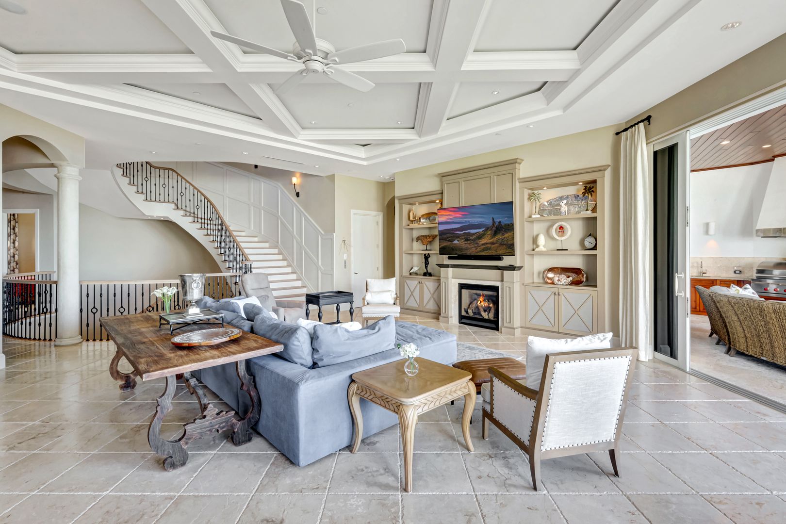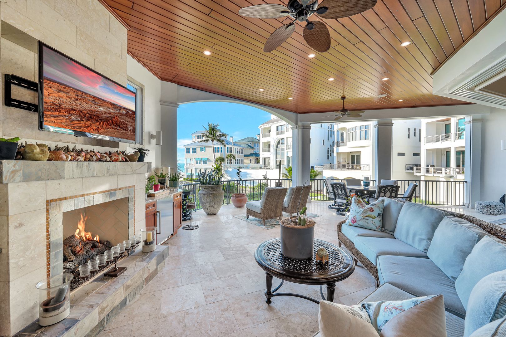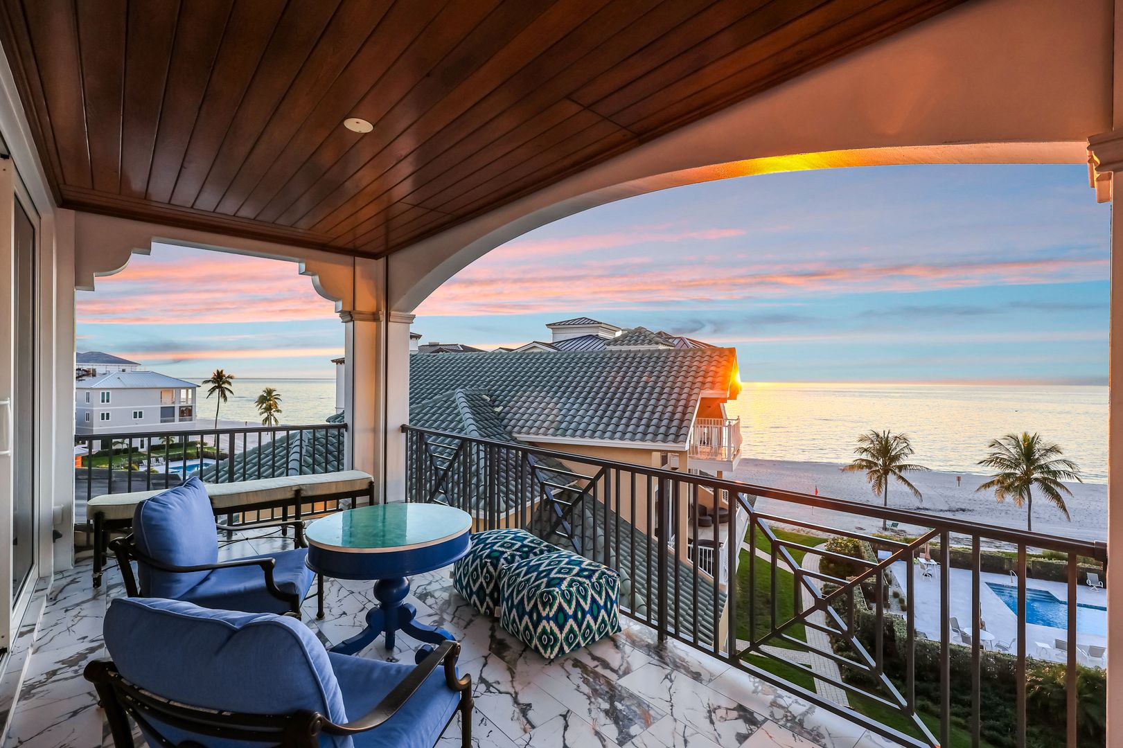Captivating To Say The Least - This Fully Furnished 4 Bedroom Ensuite 4 Bath Luxury Property In Barefoot Beach's Gated Community Provides An Incomparable Lifestyle! This Windover home built by Potter Homes designed by RG Designs constructed of reinforced concrete with 6,341 sq ft of living area under AC and over 9,774 sq ft of total living. Stunning circular driveway leads you in this masterpiece, welcome home! As you enter the large foyer, you're immediately drawn to the wide wood staircase crafted as a piece of art that leads to all floors with the ease of an elevator to all 4 levels. The main level's open floor plan provides a pallet of soft coastal colors, casual beach elegance throughout; the living room with gas fireplace flows into the dining room & chef's kitchen offering Wolf gas cooktop, Wolf double ovens, microwave, Subzero refrigerator and freezer, 4 Subzero refrigerator/freezer drawers, 3 dishwashers, Miele built-in coffee maker, marble countertops & stunning cabinetry. Each designer inspired ensuite bedroom invites you and your family into unparalleled living - a sanctuary in its own. This floor also offers a light- filled queen suite w/prt balcony, powder bath, laundry rooms, and media room that is soundproof with TV, wet bar/beverage cooler for movie or game night right out to the lanai! The 3rd level features the king primary suite offers walk out private lanai with screens, sitting area, adjoining office w/powder room & a spacious primary bath w/large walk-in shower, seamless glass, soaking tub, marble flooring & his & her separate vanities and huge his & hers designer custom closet and the 3rd queen ensuite bedroom, bath, & pvt balcony. The 4th floor features king second suite with wet/coffee bar, dbl bowl vanity, shower, stunning views from the lanai, as far as you can see. The meticulously finished Potter Home features 12' coffered ceiling was designed for entertaining family and friends, meander from the living room to the spacious outdoor entertaining area, Sonos audio system, w/gas fireplace, TV, built-in gas grill & fridge overlooking the Gulf. Home include 2 laundry rooms, central vacuum, 680 bottles climatically controlled wine room, 7-car climate controlled garage, lanai built-in waterfall spa perfect for relaxing & watching the sunsets. Continue to take in each breathtaking view, beach, & sound of surf over the renovated swimming pool and landscaped garden. A private boat dock, perfect for the boating enthusiast, is available as a separate purchase and is located just across the street. Nestled in Collier County’s Barefoot Beach community amenities include 24-hour guards/ patrols, clubhouse with fitness, tennis, pickleball, pool w/full time on-site manager. Option to join the Club at Barefoot Beach (located in the community) which offers casual & fine dining restaurants, pool & beachside (waitlist w/usage during wait period). Minutes to RSW, Downtown Naples, Mercato, & Waterside, and Golfing.