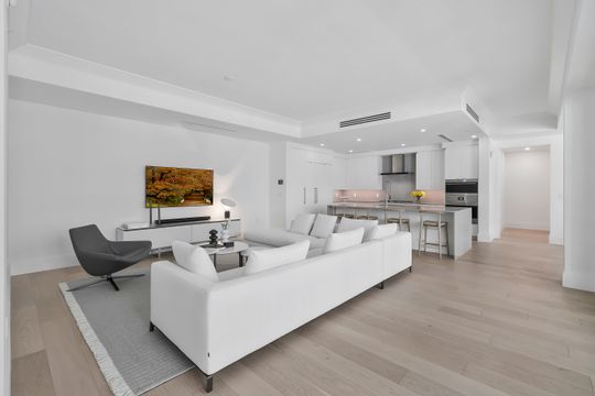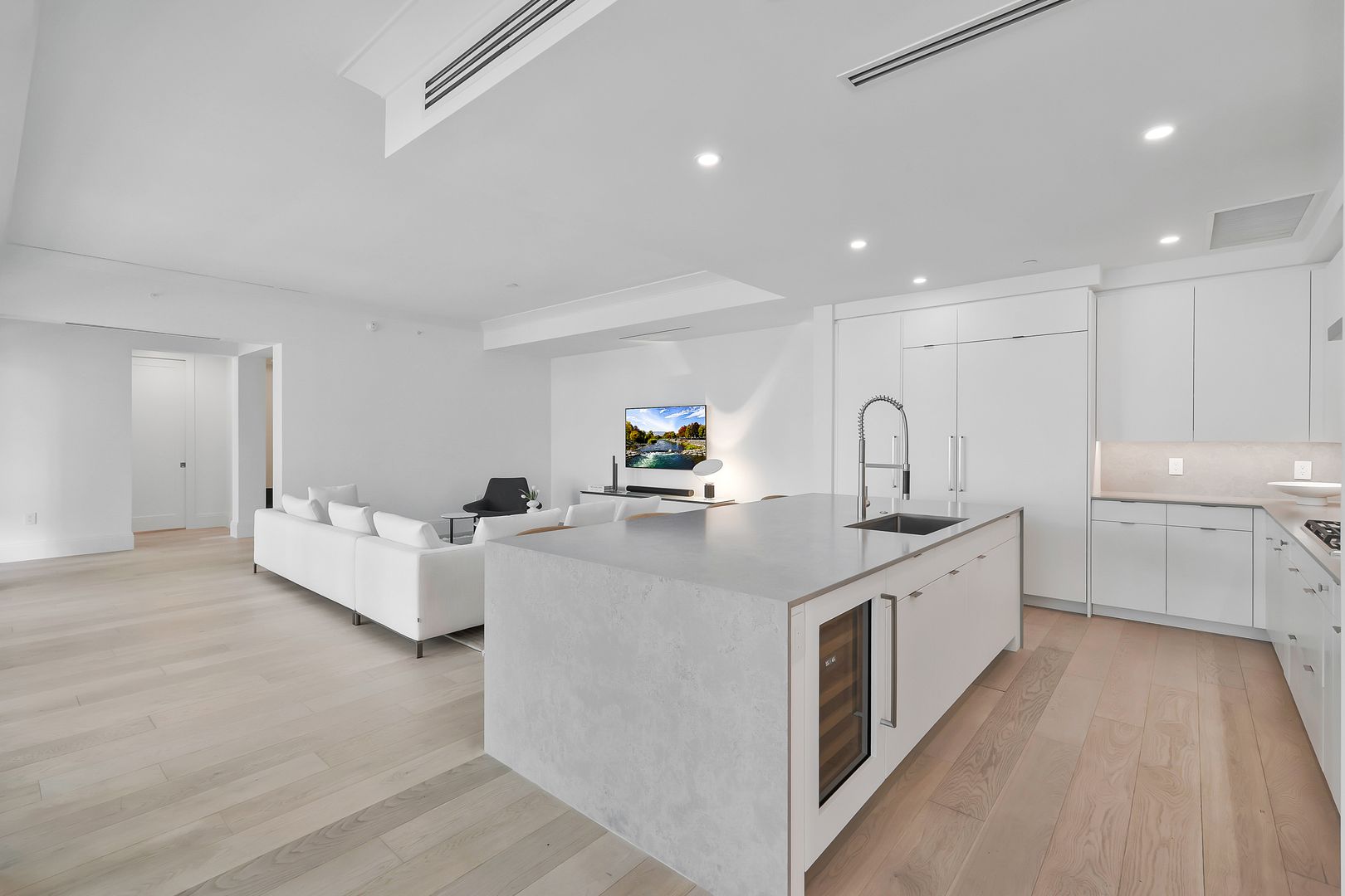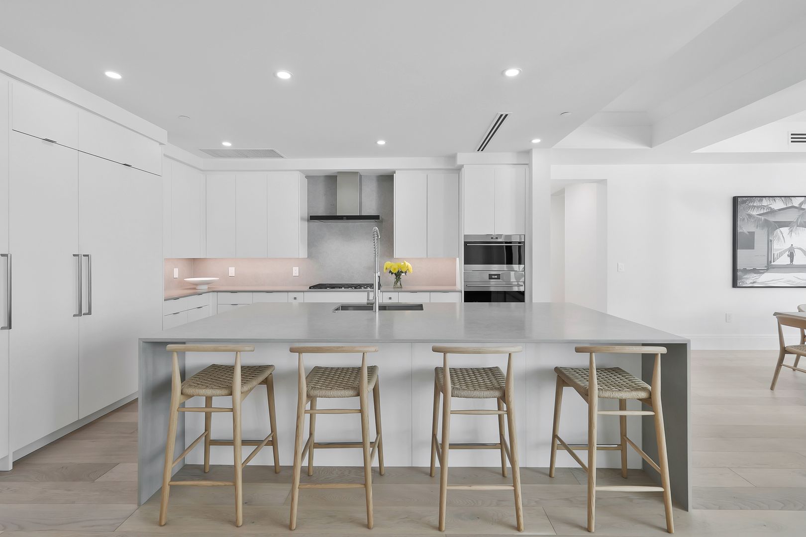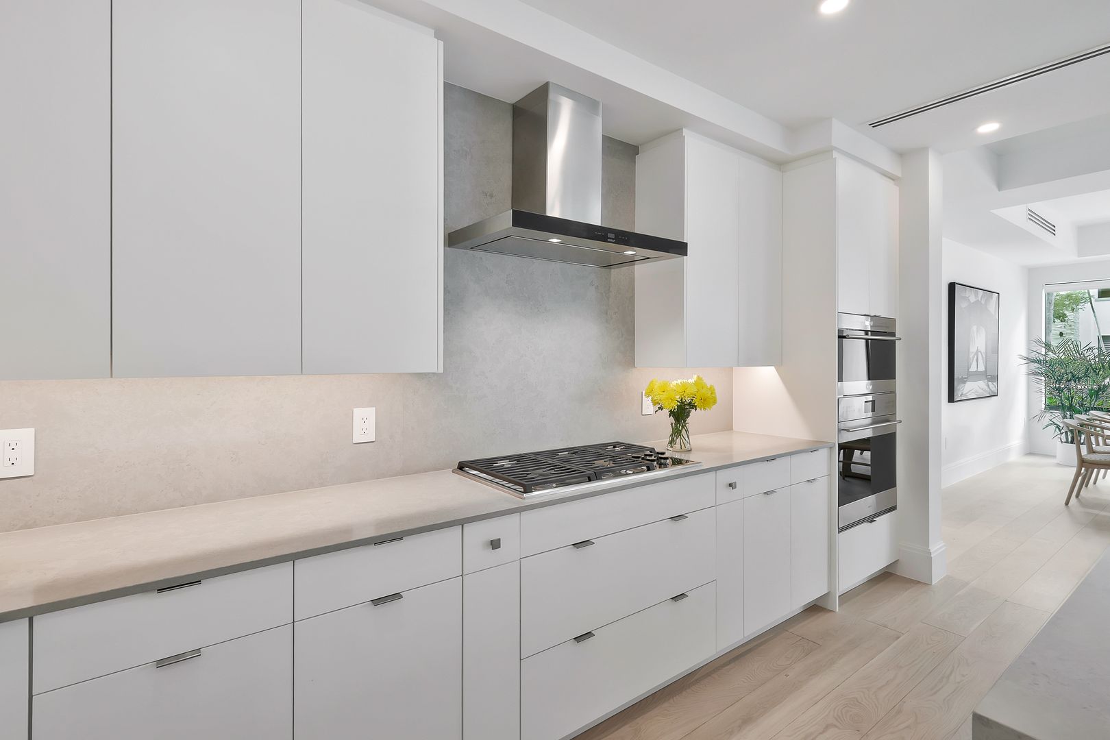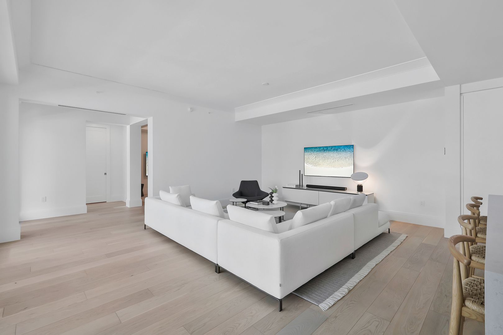 This chic two-bedroom plus den residence, complete with two deeded parking spaces, lives like a single-family home while offering the ease of a lock-and-leave condominium. A private entrance from the secured garage adds everyday convenience—especially for pet owners—and enhances the home’s privacy.