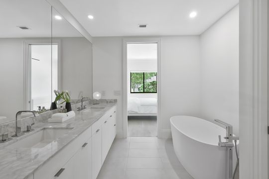 The split-bedroom layout ensures privacy, with a generous guest suite and bath set apart from the spacious primary suite and its beautifully customized bath.