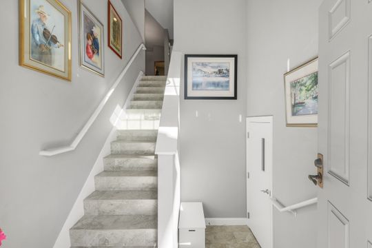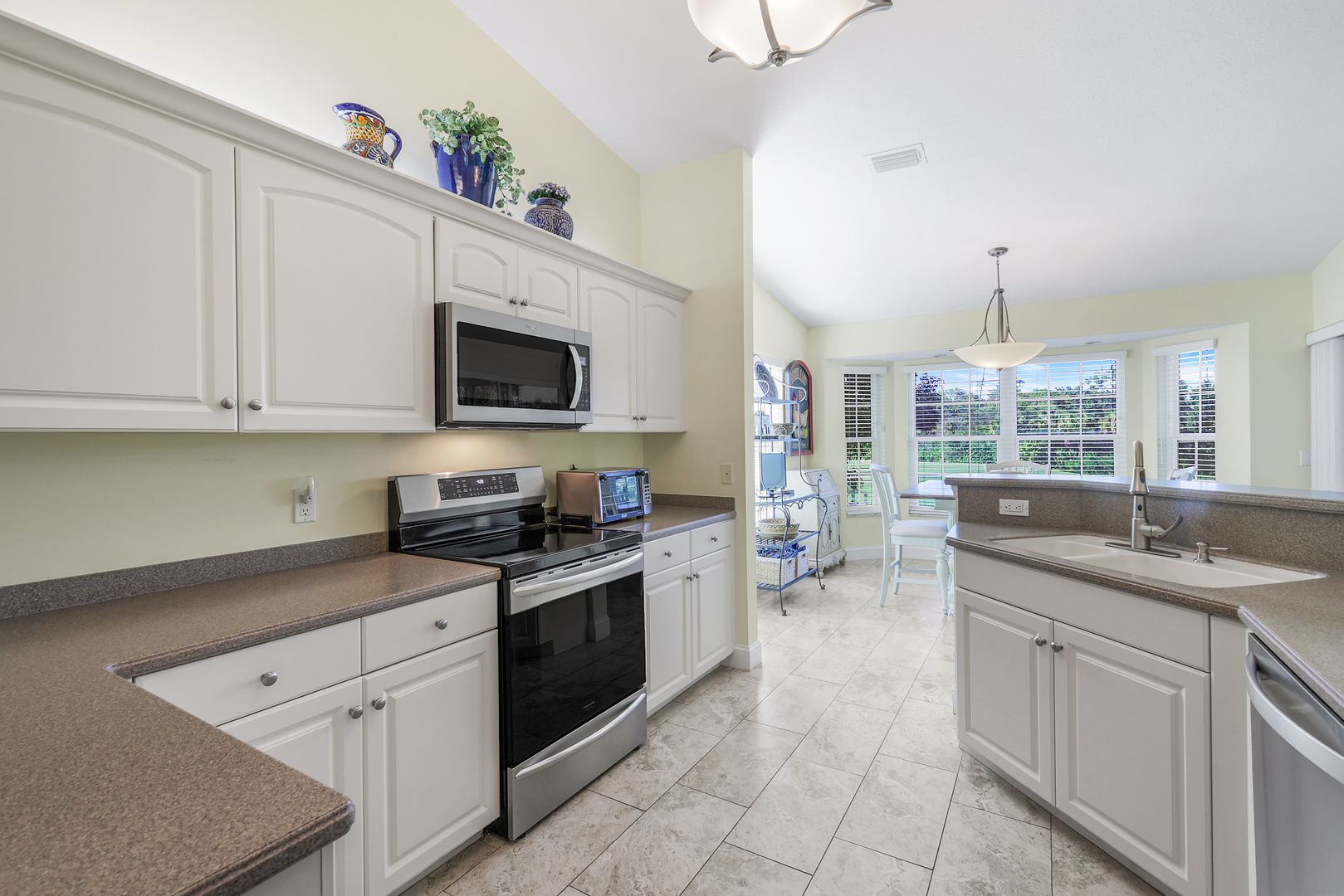 Experience effortless resort-style living in this beautifully updated second-floor Pinnacle coach home at The Strand. A private elevator (2016) welcomes you into a bright, airy 2,150 sq. ft. residence featuring vaulted ceilings, porcelain tile flooring throughout, and a thoughtfully designed 3+den, 2 bath floor plan. The enclosed lanai, enhanced with temperature-insulated, noise-reducing Solara sliders and no-see-um screening, is the perfect spot to sip your morning coffee or unwind with a glass of wine while taking in the expansive tropical golf course view. The kitchen is both stylish and functional with newer stainless-steel appliances including an induction range, a pantry with pull-out shelving, and updated fixtures. The open living and dining spaces make entertaining easy, while the den provides flexible use for a home office or reading retreat. The primary suite features two walk-in closets, linen closet and a bath with dual vanities. The guest bath has been tastefully updated with a walk-in shower and frameless glass doors. A well-equipped laundry room includes cabinetry, washer, and dryer—keeping everyday tasks convenient and organized. Every detail has been addressed for comfort and peace of mind—complete replacement of sub-flooring for sound and moisture insulation, newer impact glass windows, tall baseboards, professional interior paint, and a new 2024 Rheem A/C with UV light. Additional upgrades include a new electrical panel with generator transfer switch (supporting both 110 & 220V), new smoke and carbon monoxide detectors, and newer Kohler comfort-height toilets. Enjoy a friendly, active country club lifestyle with access to The Strand’s three impeccably maintained 9-hole golf courses, tennis, pickleball, fitness center, pool with lap lanes, bocce, and croquet. The recently remodeled Strand Clubhouse showcases stunning classic coastal décor, offering residents elegant spaces for dining and socializing. Dine casually at the Island Bar or the all-new Tavern 59, or savor formal dining at the clubhouse. Centrally located in North Naples, The Strand offers easy access to shopping, dining, and the area’s beautiful beaches. This is the perfect blend of comfort, quality, and community—ready for you to move in and enjoy the Naples lifestyle.