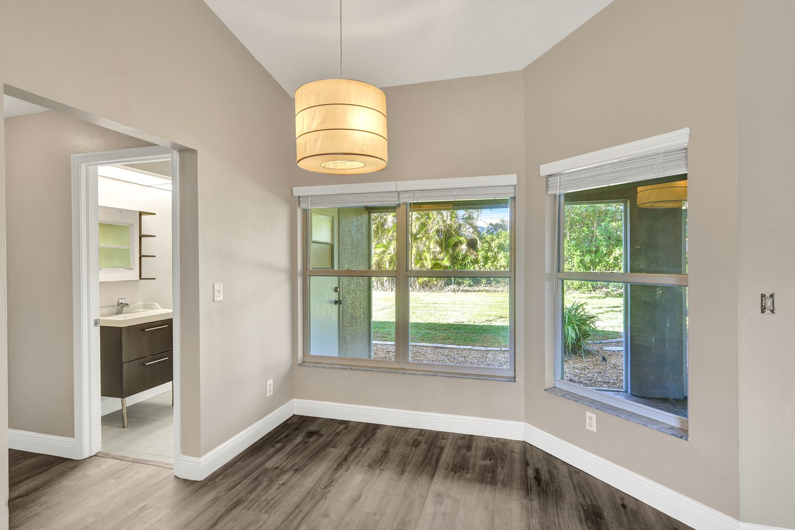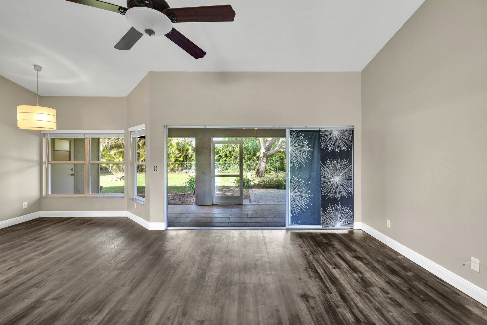 Charming Corner-Lot Gem with Upgrades! Nestled off Academy Blvd, perfectly situated between Veterans Parkway and Pine Island Road, this home offers an unbeatable location close to water access and conveniences. Boasting fresh interior paint (2024), a new washer and dryer (2024), and a new A/C system (2024), this property has been meticulously maintained for your peace of mind. The roof, soffit, fascia, garage door, and manual shutters were all replaced in 2020, and the home has withstood storms with no damage—a valuable reassurance! Step onto the landscaped walkway to the screened-in front entry, welcoming you to a spacious interior with vaulted ceilings, durable LVT flooring throughout, and crown molding for added elegance. The living area flows seamlessly to the large screened lanai through sliding glass doors, creating an inviting indoor-outdoor living space. The kitchen features stainless steel appliances, a breakfast bar, and a cozy breakfast nook—ideal for both casual mornings and entertaining. The primary suite offers private access to the lanai, two walk-in closets, and an en-suite bathroom with dual sinks, a walk-in shower tiled to the ceiling, and thoughtful design touches. The backyard is a true oasis, featuring a pavered sun deck, chain-link fencing, lush bushes, and mature trees that provide privacy and shade. A rustic fire pit surrounded by mulch landscaping adds to the charm, while the expansive tree is perfect for a tire swing or relaxing beneath its shade. Additional highlights include a laundry area with overhead shelving, professional landscaping, and a large corner lot offering ample outdoor space. This home is ready to welcome you—schedule your private showing today and discover the perfect blend of modern upgrades and timeless charm!