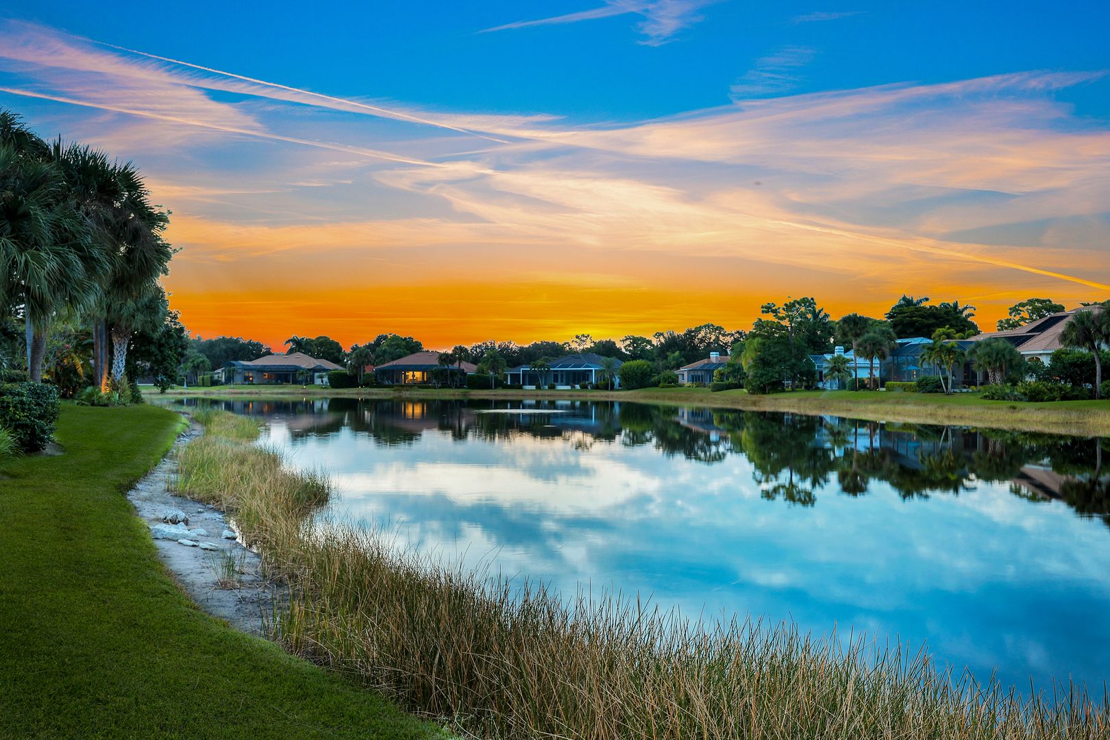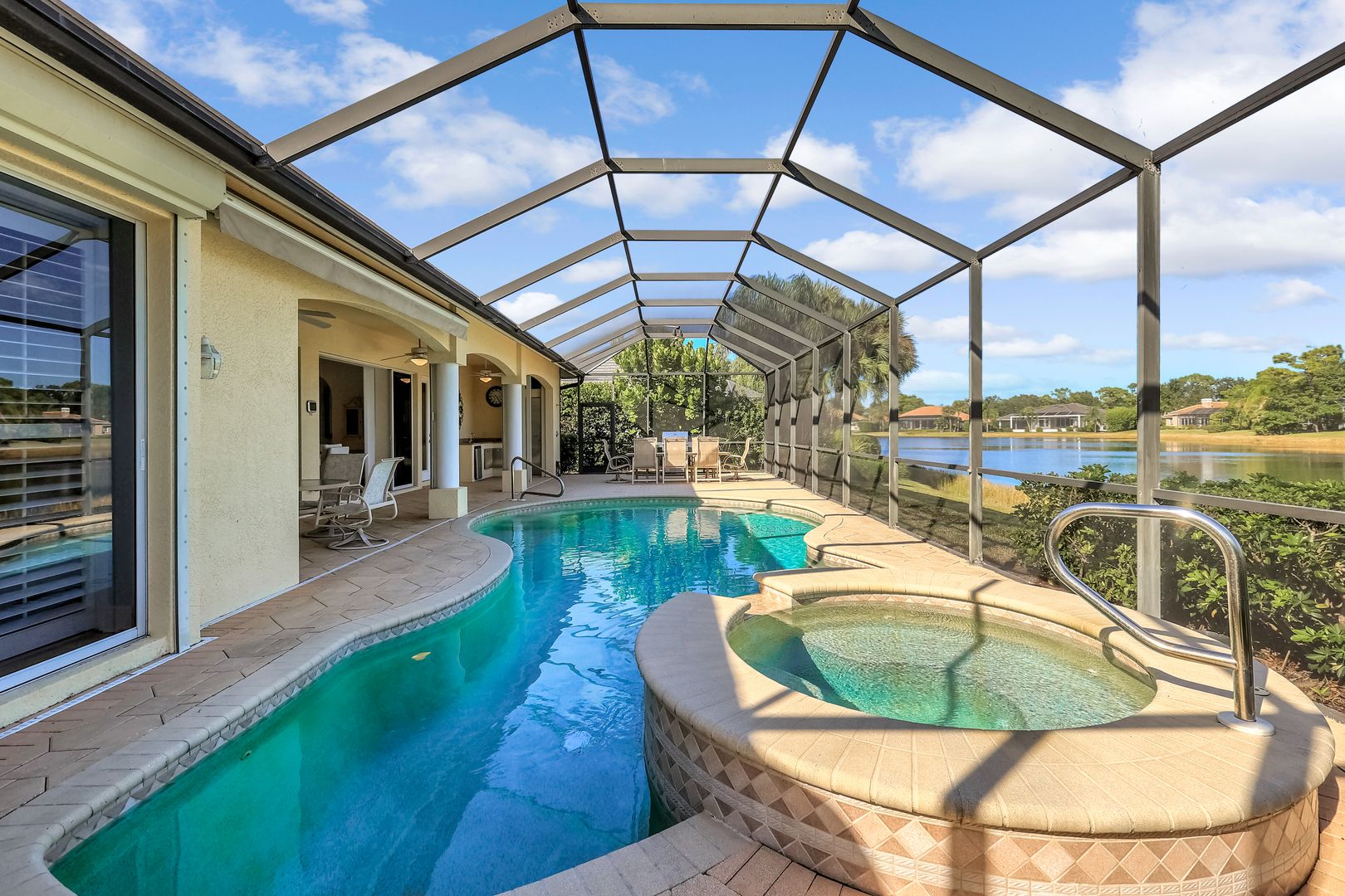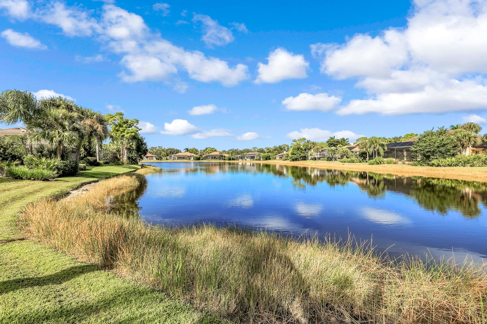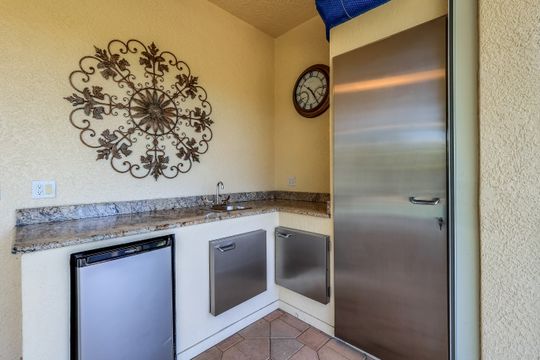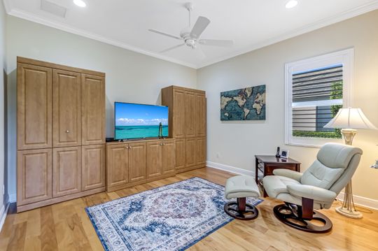 Sweeping lake and pool views define the experience at this refined Pelican Landing residence. With water vistas framed through wide sliding doors, the great room opens directly to a screened lanai with an outdoor kitchen. The pool area offers a spacious, private setting ideal for entertaining, all perfectly positioned to embrace the home’s lakefront setting. Designed for flexibility, the residence includes four bedrooms and three baths. One bedroom has been transformed into a custom-built office, featuring dual workstations and bay windows that welcome abundant natural light—ideal for working or learning from home. Engineered wood flooring extends throughout the home, creating a cohesive, low-maintenance foundation. Two guest baths have been fully remodeled with stylish finishes, including one with en-suite access, while the primary bath is thoughtfully designed for comfort and function. Located in a gated, amenity-rich community, residents enjoy access to a private beach park with complimentary boat shuttle, tennis and pickleball courts, a fully equipped fitness center, kayak and canoe launch, butterfly garden, sailing club and miles of nature trails. This home combines waterfront serenity with a premier Southwest Florida lifestyle.