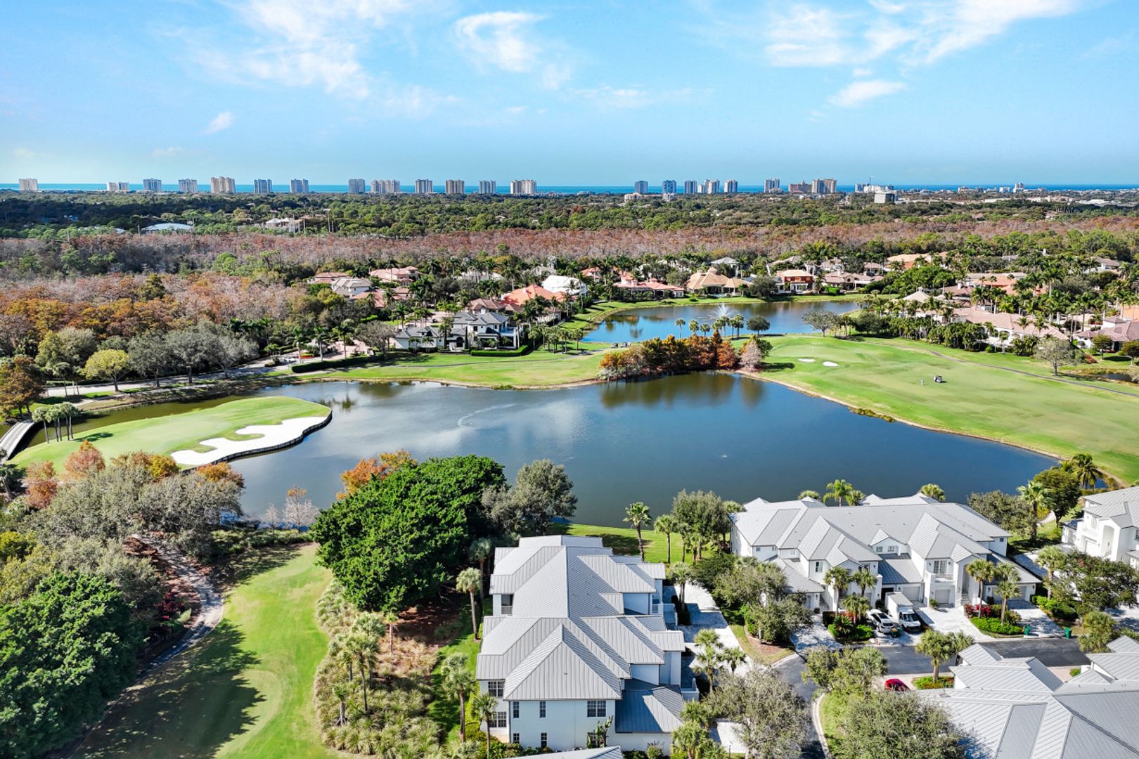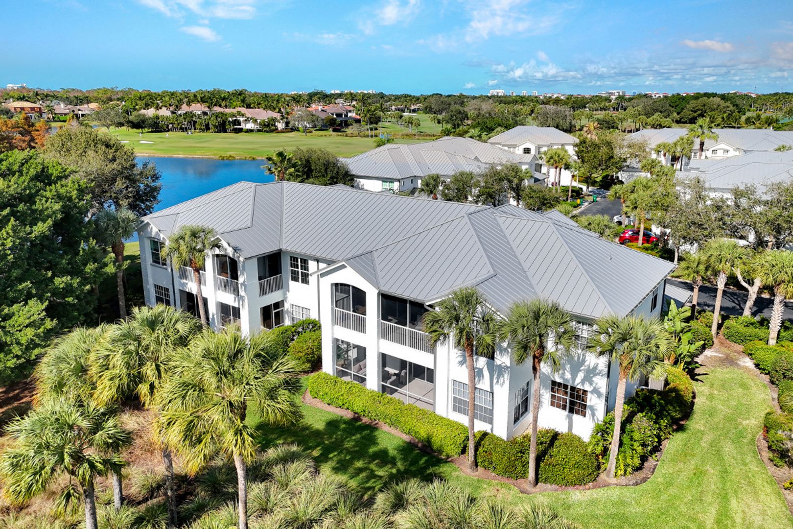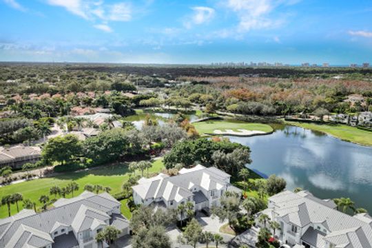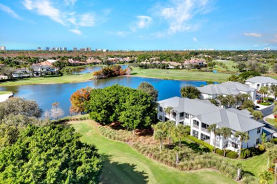 Postcard-perfect panoramic GOLF & WATER VIEWS from this SOUTH facing lakefront building at the very END OF THE CUL-DE-SAC street make for picturesque as well as peaceful living at Osprey Pointe in Pelican Marsh. The premium location is topped off with a most desirable coach home layout. Designed as an UPPER-FLOOR END UNIT with a roomy 2-CAR GARAGE, the spacious 4 BR+DEN/3 FULL BA floor plan is complemented by an expansive screened lanai. TEN-FOOT CEILINGS w/ 11-ft. coffers create light-filled interiors that are enhanced by rich crown molding and a neutral color palette throughout. Distinctive features range from a private elevator and lanai access from the great room, morning room and owner's bedroom, to an island kitchen with double ovens and custom closet systems in all four bedrooms. Meticulously maintained, the home is upgraded with newer AC, water heater, and appliances. This REMARKABLE FIND is elevated by a quiet, intimate lifestyle at Osprey Pointe offering a private pool w/ hot tub and renovated clubhouse for social gatherings. New metal roofs are being installed presently, followed by new paver driveways and exterior painting throughout OP. At the Pelican Marsh community center, you find a restaurant w/ al-fresco dining, six pickleball courts, eight tennis courts, bocce courts, a state-of-the-art fitness center w/ varied classes, and social spaces. Miles and miles of walking paths are the icing on the cake. Pelican Marsh Golf Club memberships are optional. Located off US 41 in North Naples, Pelican Marsh residents enjoy three access-controlled gated entrances to the east, south and west with close proximity to Vanderbilt Beach; Vanderbilt Galleria and its weekly Farmers Market or Mercato for Whole Foods shopping and a fun night out are just around the corner.