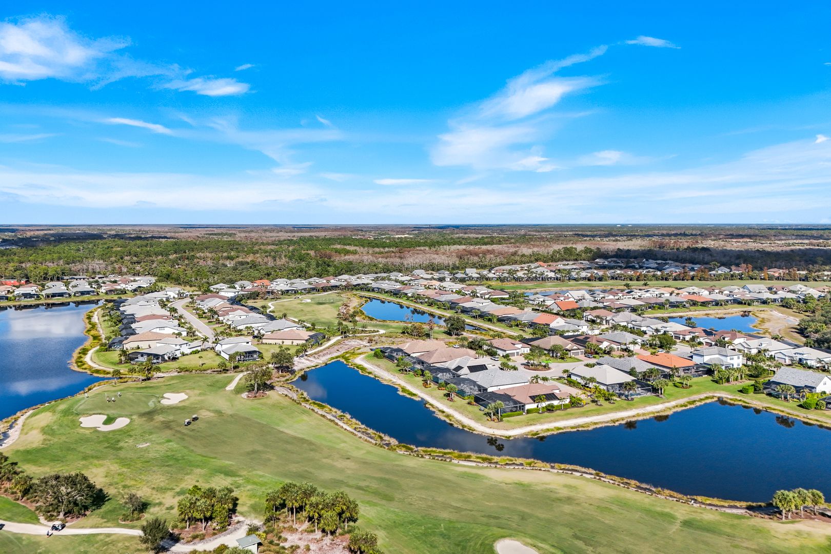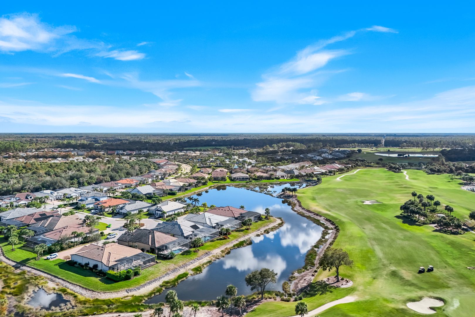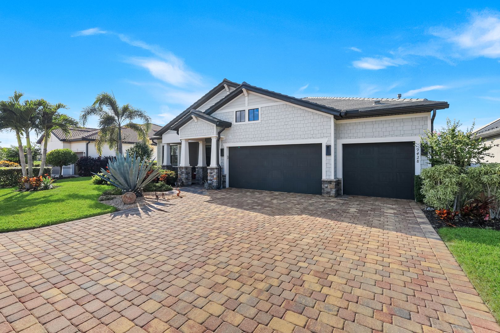 Calling all golf connoisseurs and luxury seekers. Welcome to an extraordinary, one-of-a-kind estate perfectly positioned on a premium cul-de-sac lot within the prestigious Greyhawk at Golf Club of the Everglades. This exceptional residence offers breathtaking, uninterrupted views of the tranquil lake and the 18-hole championship golf course, showcasing views of the 3rd, 11th, and 14th holes, along with the tee box for the 12th hole, all beautifully framed by a panoramic lanai—an ideal backdrop for unforgettable sunsets and serene mornings. This stunning Clubview model spans 3,083 square feet and is thoughtfully designed for both refined entertaining and everyday relaxation, creating the feel of a private resort. A charming rocking-chair front porch sets the tone, while the extended rear lanai invites you to fully embrace Florida’s indoor-outdoor lifestyle. Inside, a grand foyer opens to a spacious four-bedroom, three-bath layout complimented by two private offices/dens and anoversized three-car garage. The heart of the home is the chef’s kitchen, featuring gas cooking, an extended island, and seamless flow into the formal dining room and expansive gathering room, highlighted by an elegant coffered ceiling. The luxurious primary suite is a true retreat, offering dual custom oversized closets and a spa-inspired bath with soaking tub, walk-in shower, and ample linen storage. The guest wing provides exceptional privacy, featuring a large guest suite with custom walk-in closet and a Jack-and-Jill bedroom configuration sharing a third bath. Step outside to your private oasis: a covered and extended travertine lanai surrounds an oversized heated saltwater pool and spa, complete with sun shelf and fountains—perfect for entertaining or unwinding in style. The immaculate garage is equally impressive, featuring epoxy flooring, custom cabinetry, ceiling-height storage, and a split A/C system. Located in an amenity-rich, socially vibrant golf community, residents enjoy a full calendar of events, sports complex, state-of-the-art fitness center, resort-style heated pool, and two clubhouses with year- round dining. This is more than a home—it’s a lifestyle. Fall in love with this truly must-see luxury retreat.